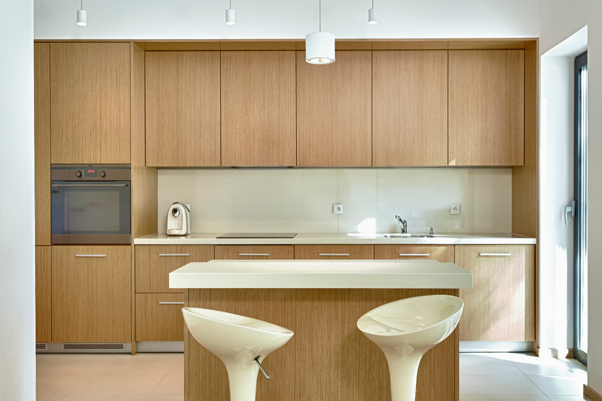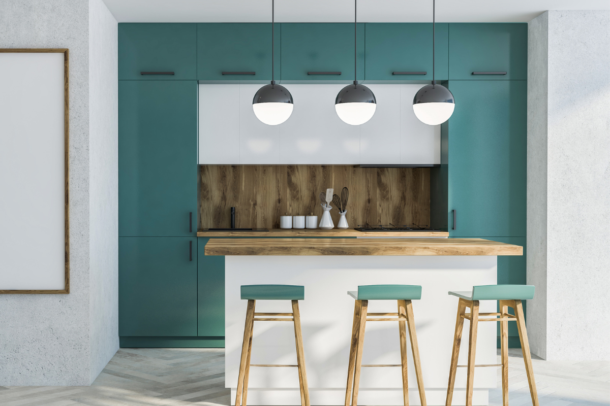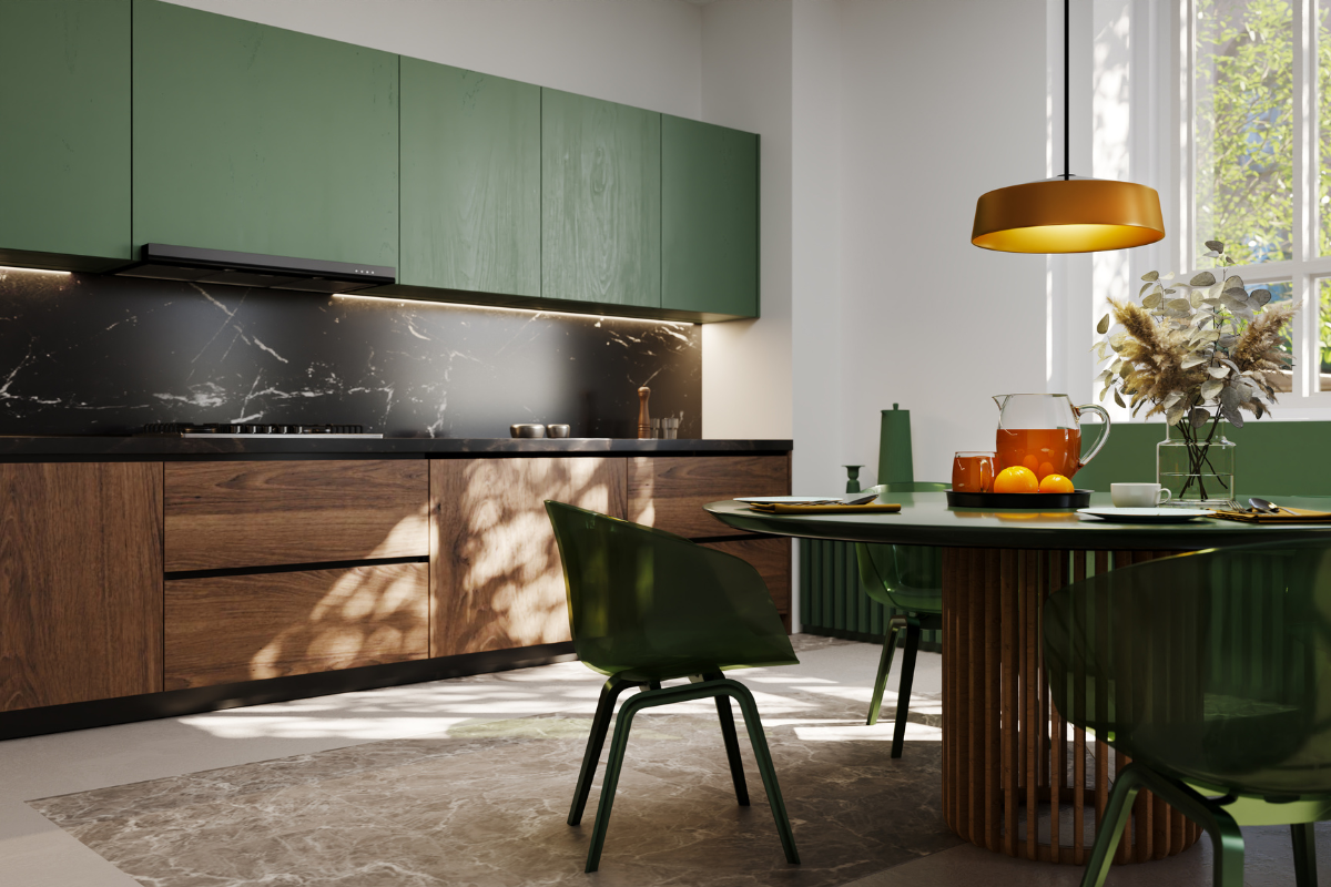 ~ Кухня Близкий к природе зеленый цвет фасадов уравновешивает пространство и идет в ногу с трендом экологичности Материал фасадов: ЛДСП