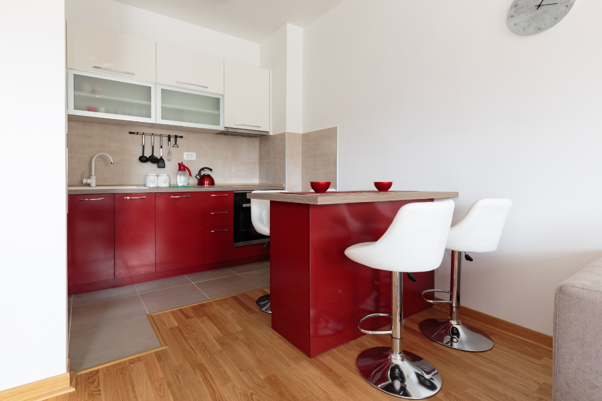 ~ Кухня Выражение характера и сочетание яркого красного с природными оттенками Материал фасадов: ЛДСП